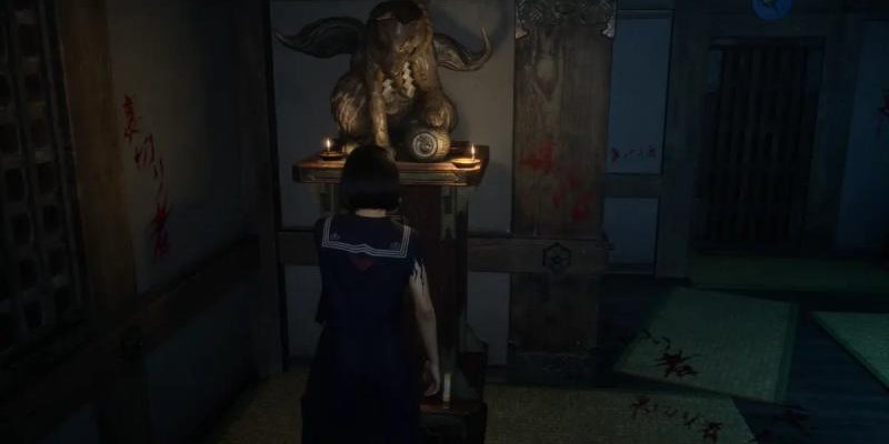 After entering the room with Sakuko, search the altar; there will be a note on it with a poem in which the solution to the riddle is hidden.